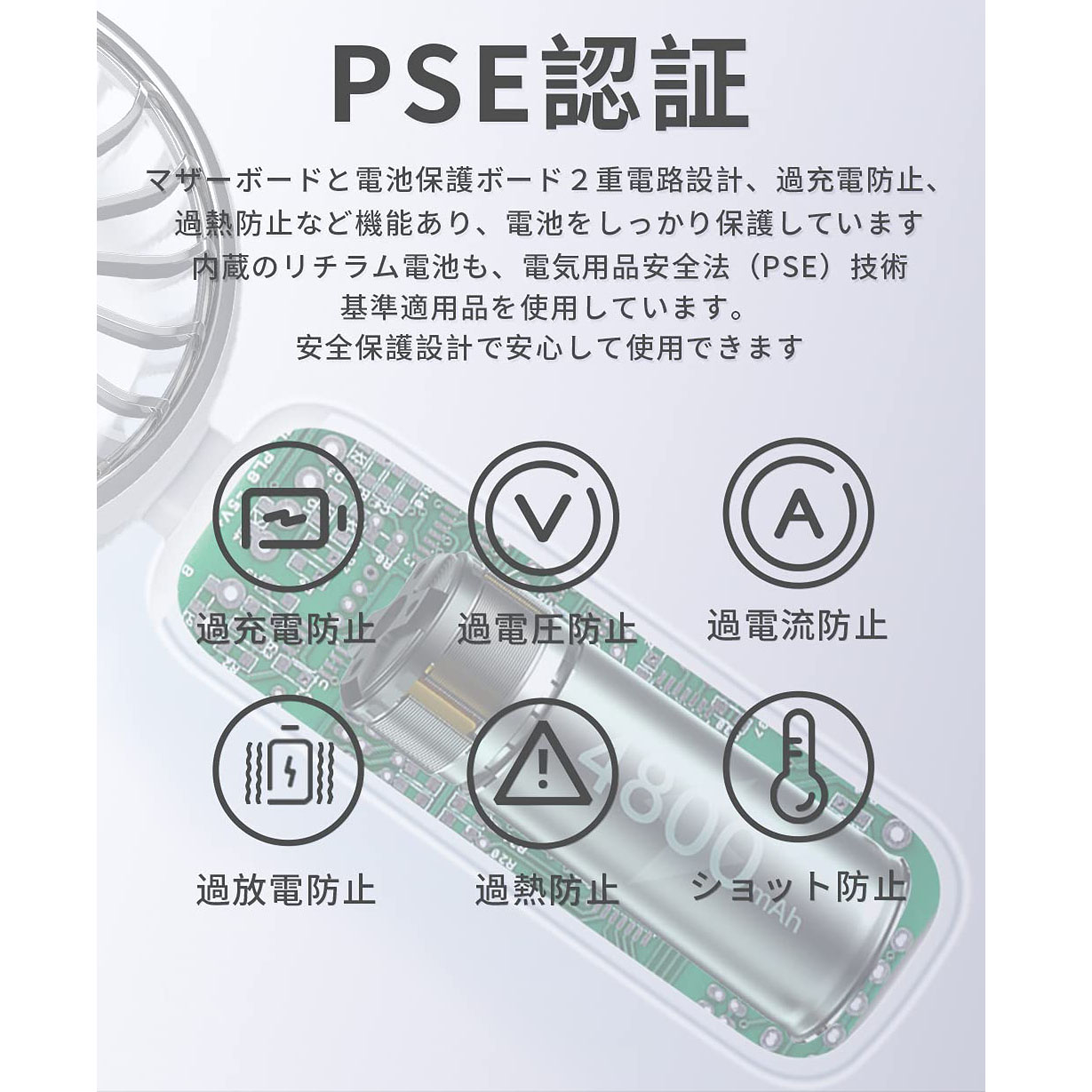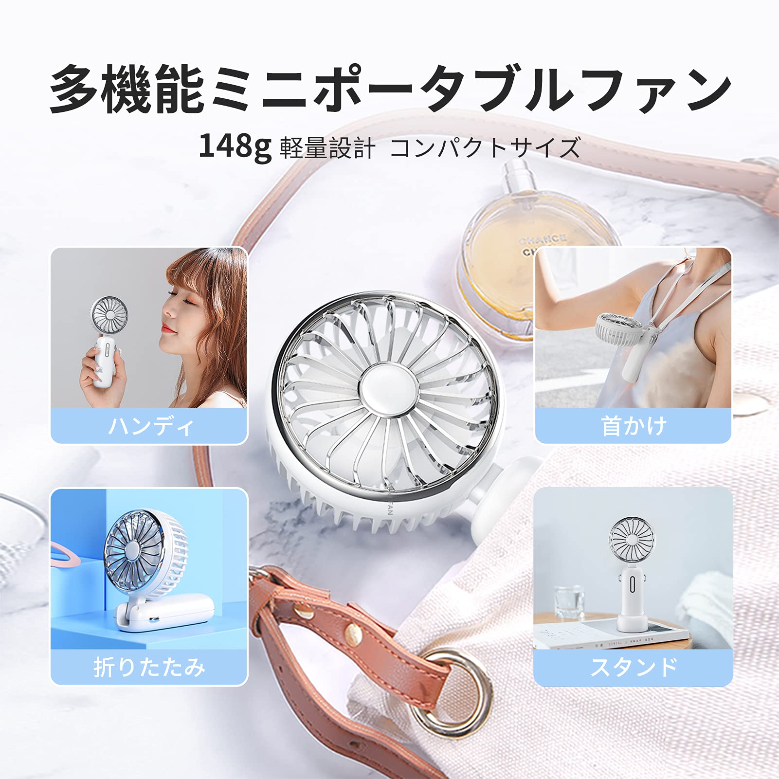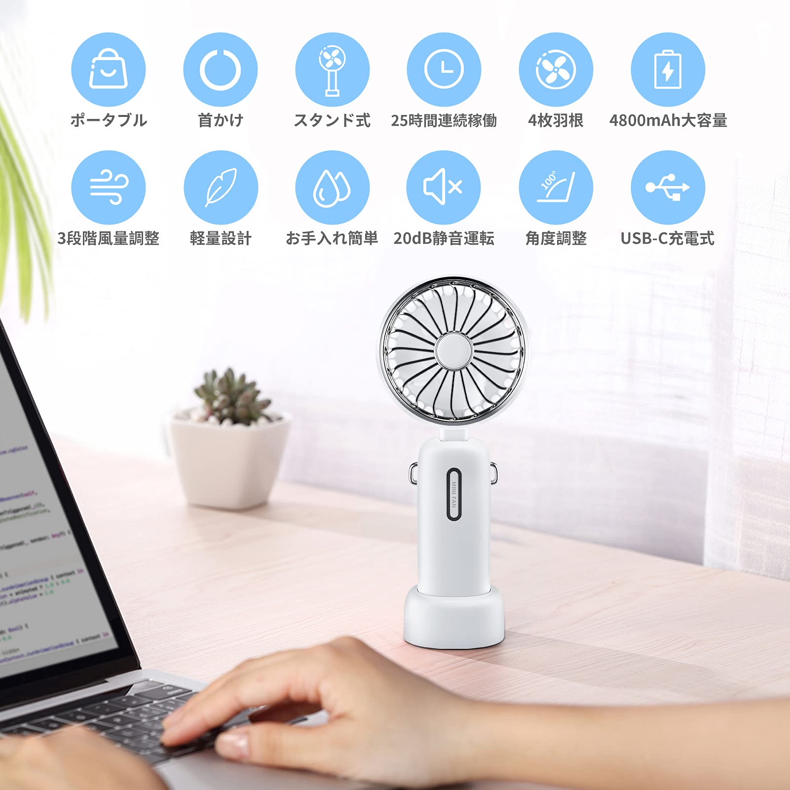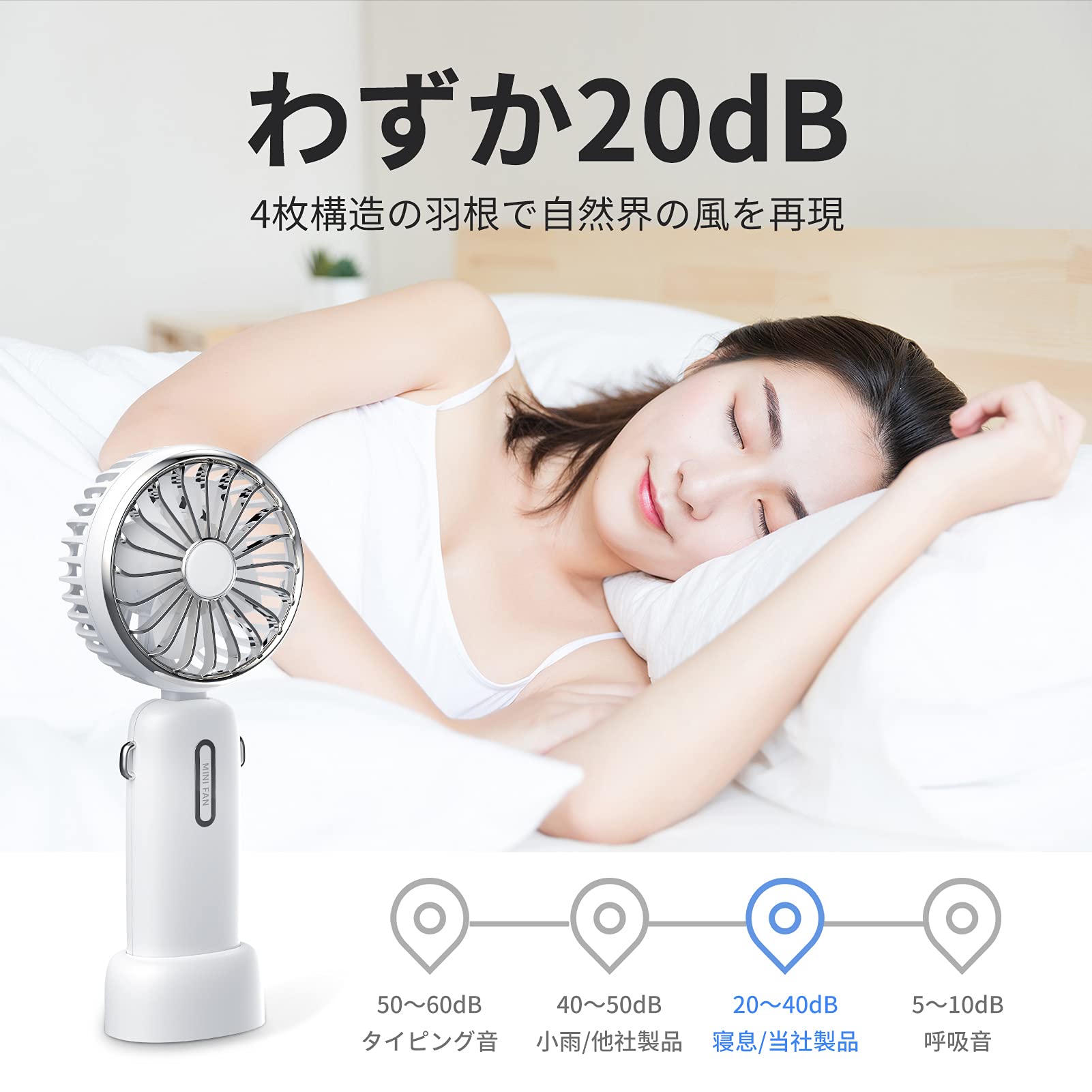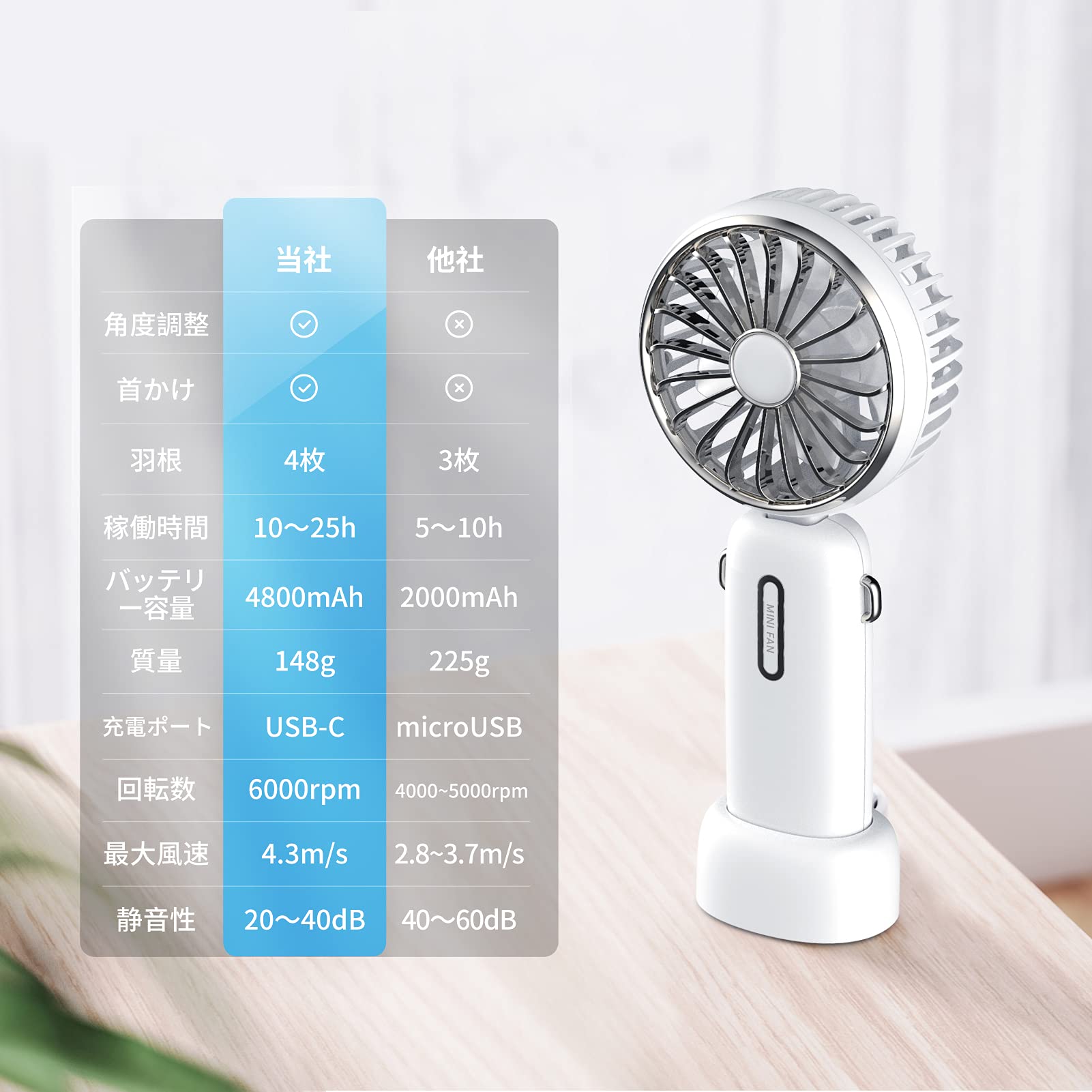 4800mAh大容量 ハンディファン 最長25時間連続稼働 20dB静音