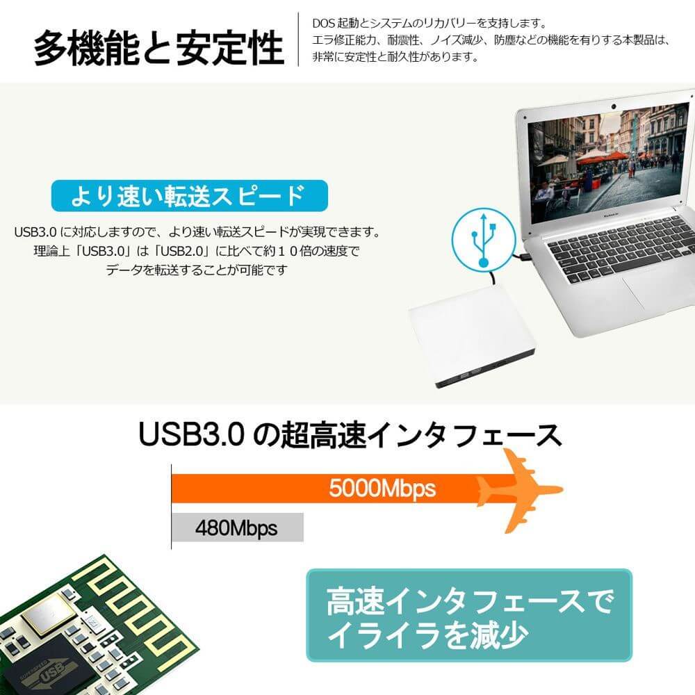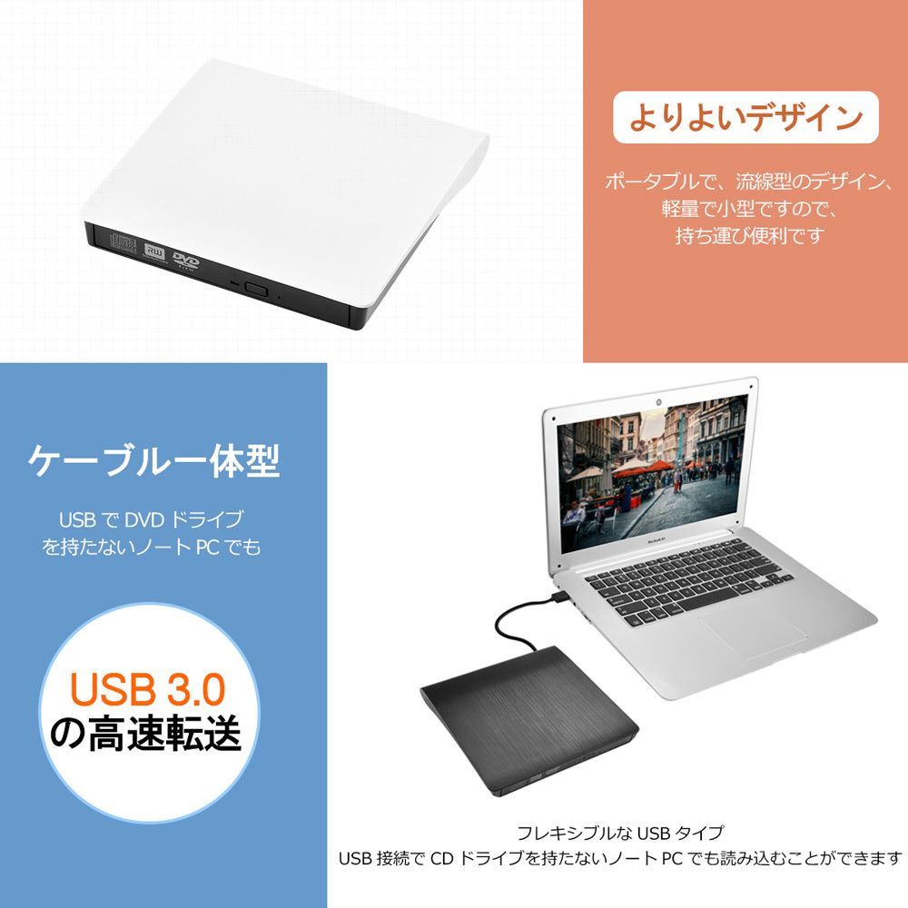 DVDドライブ DVD 外付け =USB3.0 DVD ポータブル 外付け CDドライブ
