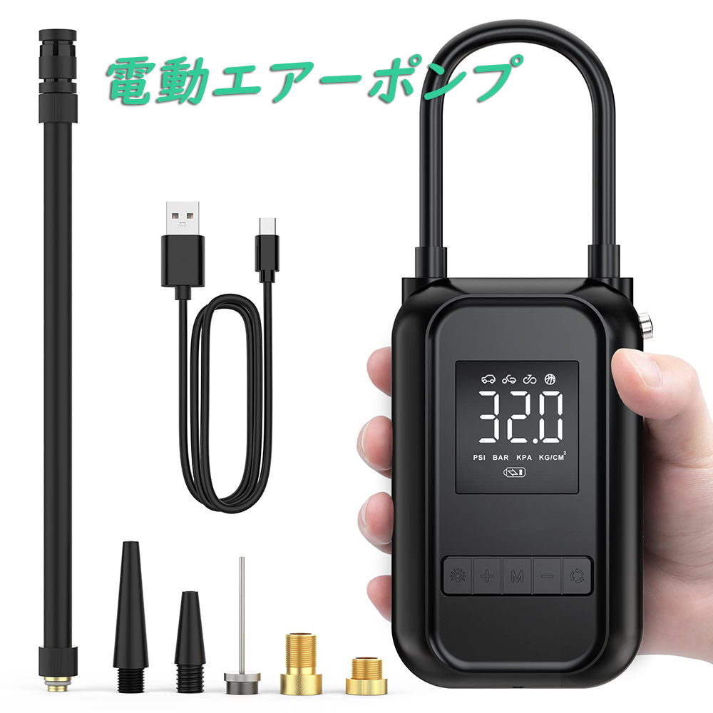 電動エアーポンプ 空気入れ エアーポンプ LEDライト付き 大画面ディスプレイ 車 バイク 自転車 ボール 電動ポンプ 最大圧力150PSI 4000mAh大容量バッテリー タイヤくうき入れ コンパクト