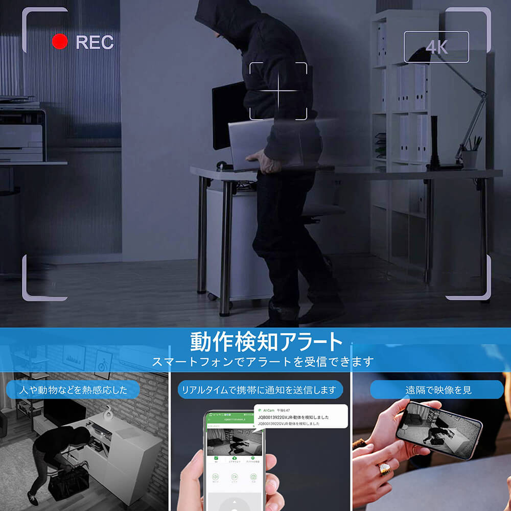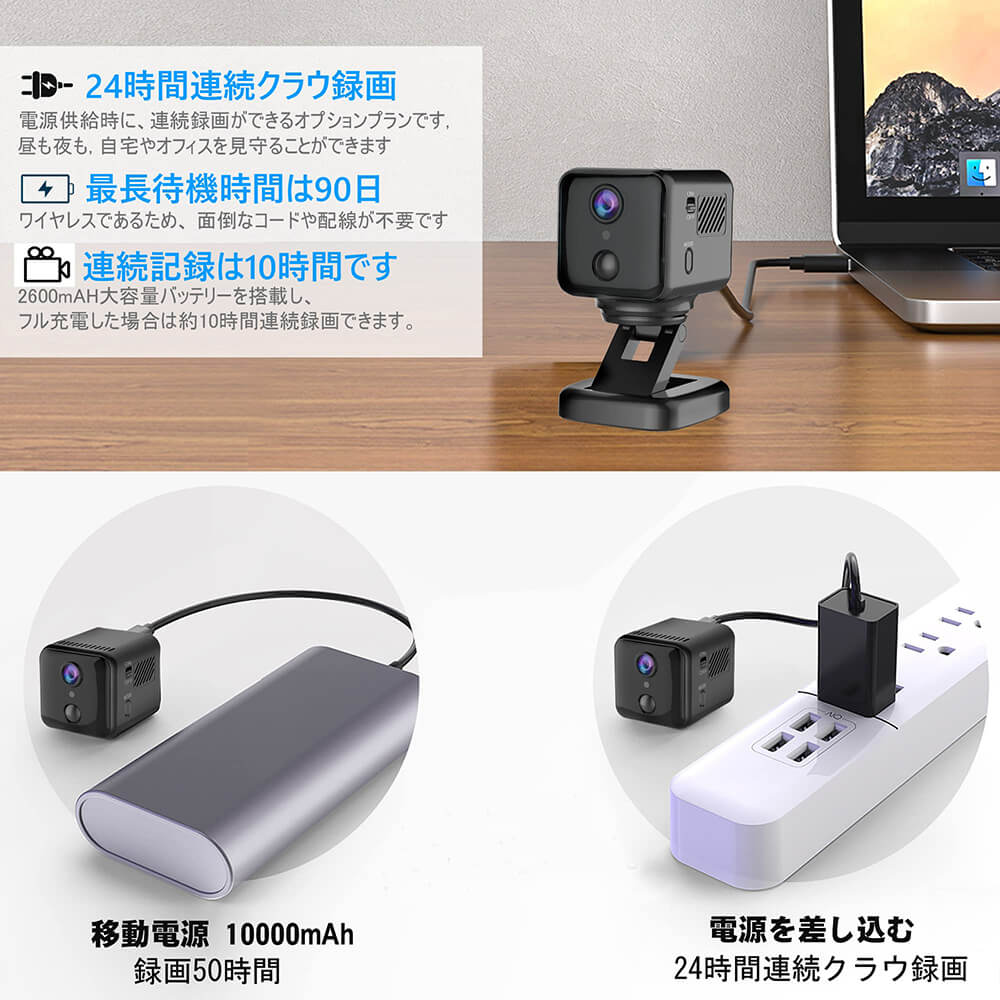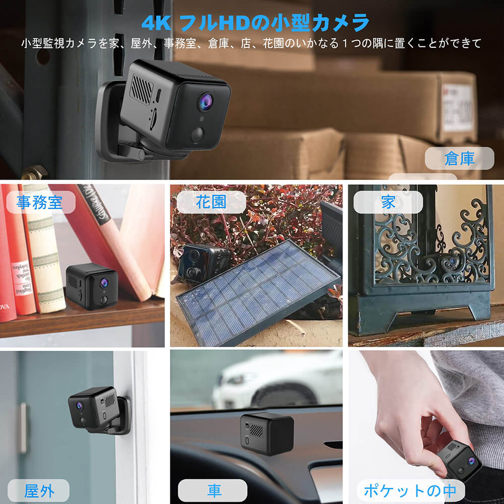 • 隠しカメラ WIFI機能付き 遠隔監視 小型カメラ 動体検知 暗視機能 赤外線撮影スマートフォン制御カメラ回転 4K HD画質 90日待機長時間録画 防犯 監視 録音録画 160°広角 室内 USB充電
