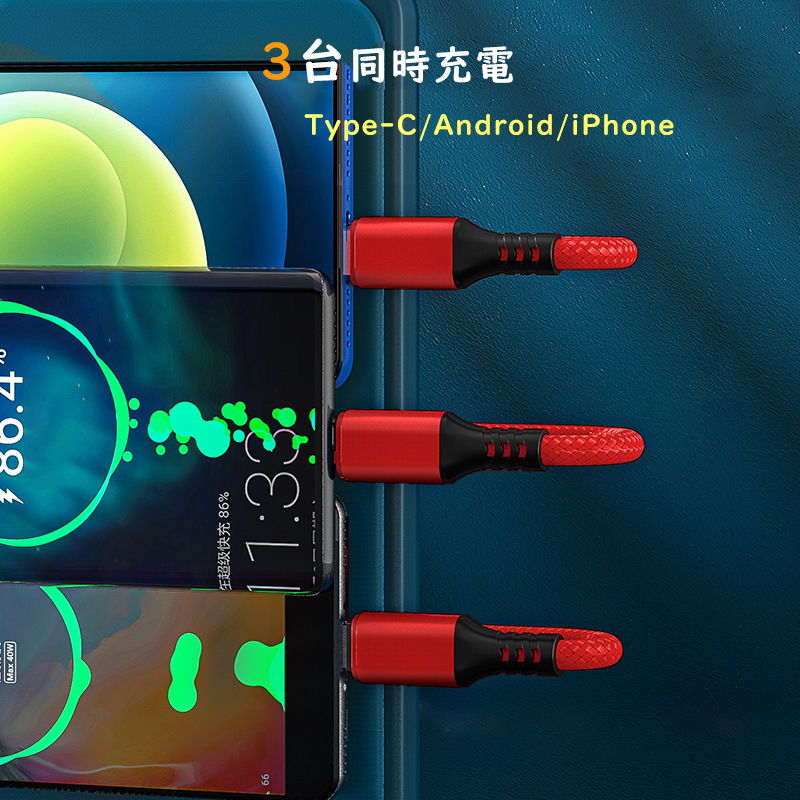 • 充電ケーブル 3in1 2A大電流 急速充電 1.0m usb ケーブル 充電コード タイプc ケーブル 一本三役 同時給電可能 Type-C Android Phone等多機種対応 ブラック 2本セット
