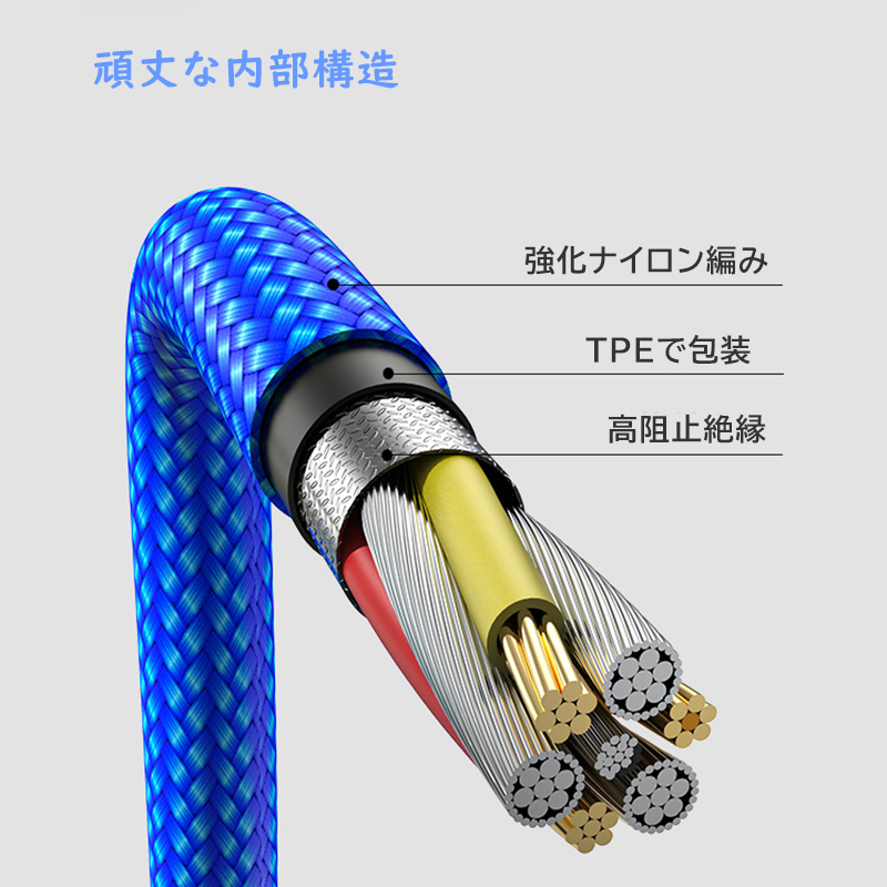 充電ケーブル 3in1 2A大電流 急速充電 1.0m usb ケーブル 充電コード タイプc ケーブル 一本三役 同時給電可能 Type-C Android Phone等多機種対応 ブラック 2本セット