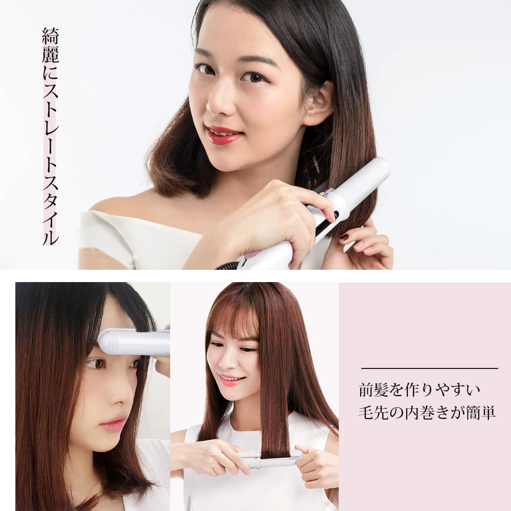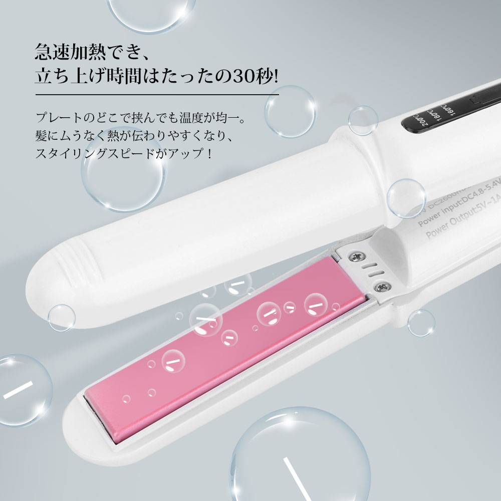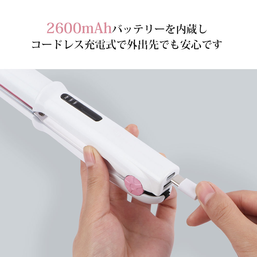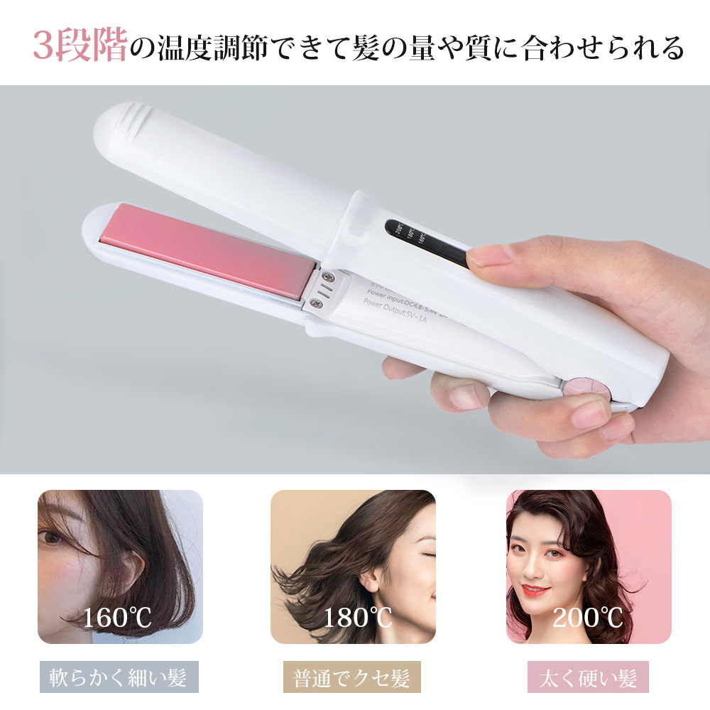 • ヘアアイロン 美髪器 ストレートアイロン ヘアアイロンコードレス ミニ コテ 旅行 携帯用 女性 軽量 ホワイトピンク USB充電式 3段階温度